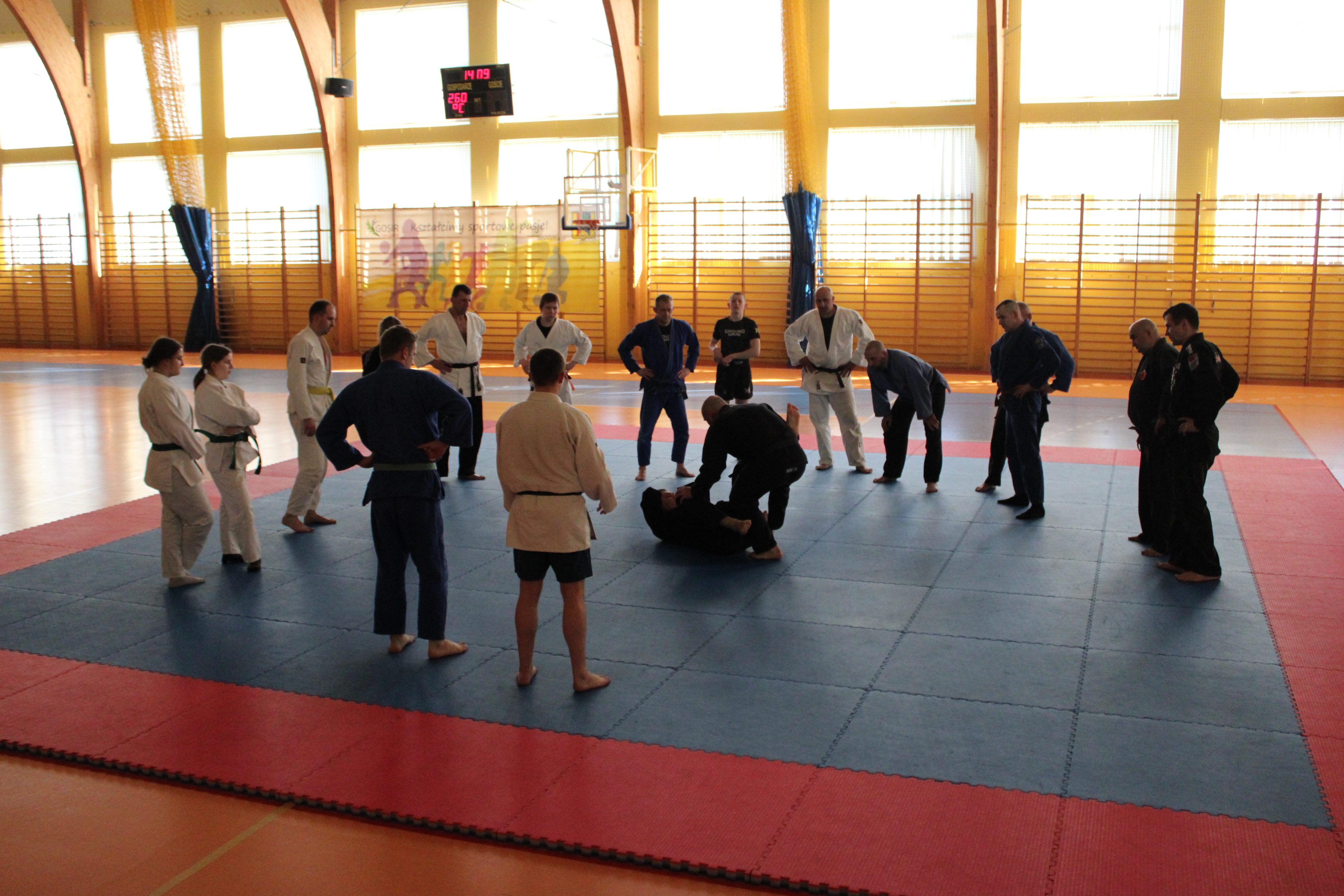 Kolejne bloki szkoleniowe skupiały się na praktycznych aspektach samoobrony i ju jitsu, prowadzonych przez Pawła Szmidta (1 dan) oraz Grzegorza Żukowskiego (1 dan). Następnie uczestnicy doskonalili rzuty i obalenia pod okiem Adama Żukowskiego (4 dan), by w dalszej części seminarium zgłębiać techniki walki w parterze z Łukaszem Budnym (4 dan).